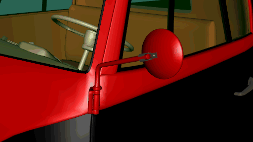being parented to the door which takes care of the hinge tilt, the nirrors didnt require null nodes