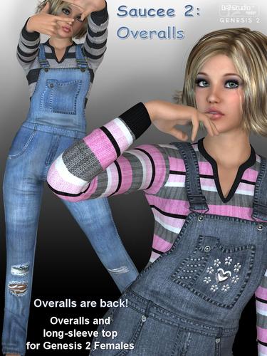 A bit late with this, but Saucee 2 Overalls is now in the store. Loaded with morphs, the outfit works beautifully with your Genesis 2 Females, in both DAZ Studio and Poser. Overalls are BACK!