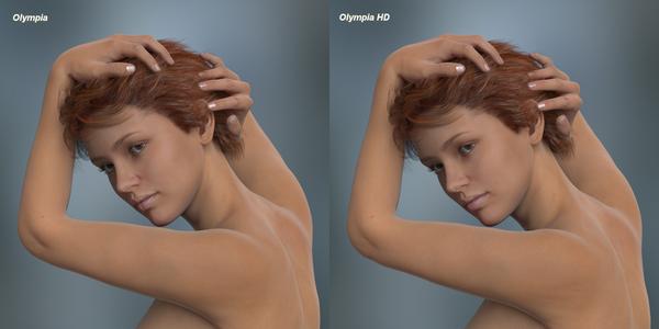 Here's a customised Olympia with Olympia HD added as well as 50% V6 HD added as well - the worst thing I noted by mixing both HD morphs together was the joint in the big toe started getting overemphasised, but stuff like that is par for the course when mixing stuff like that together.
