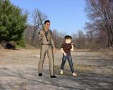 Thanks. Otis is tough to reproduce because he always has a drunks face...lol. I had a hard time finding any pictures of him in color. They are 98% black and white. So many different expressions when you are as drunk as he would get. I am working on the inside of the jailhouse. I screwed up thinking there was three cells. Nope! Only two, so I had to start over. I used the checkered shirt outfit for G8 males for the uniforms. I made the sleve patches exact from the show and their star badges. Barney's says Deputy Mayberry and Andy's says Sheriff Mayberry. I used a 1916 pistol just like Barney's and he has one bullet in his shirt pocket...hahaha. I wish I had a template for the shirts so I could actually put the sleve patches on the shirt and not have them seperate. They won't give with the shirt so you have to adjust them to each pose. The one problem I do have is Andy's shirt top button was always undone. This shirt has it buttoned and will not open...crap! When I find a shirt with the top button open, I will use it. Hopefully a template for the sleeve patches. Quite a challenge so far, but I am just getting started with so many characters to do. Can't wait to do Ernest T. Bass. The faces he would make are too funny. Throwing rocks through windows...hahaha.