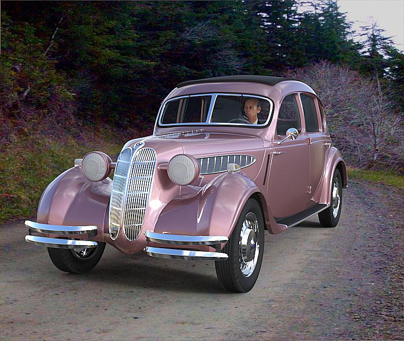 I was lucky that mcj (thanks!) made this model of a 1941 Chevy Master Deluxe. I had a project car of this same model to restore but I had to sell it when my third child was born. I made some changes to the materials to add a metallic burgundy color, chrome, and tinted windows. Now I just need to make some flames.wink