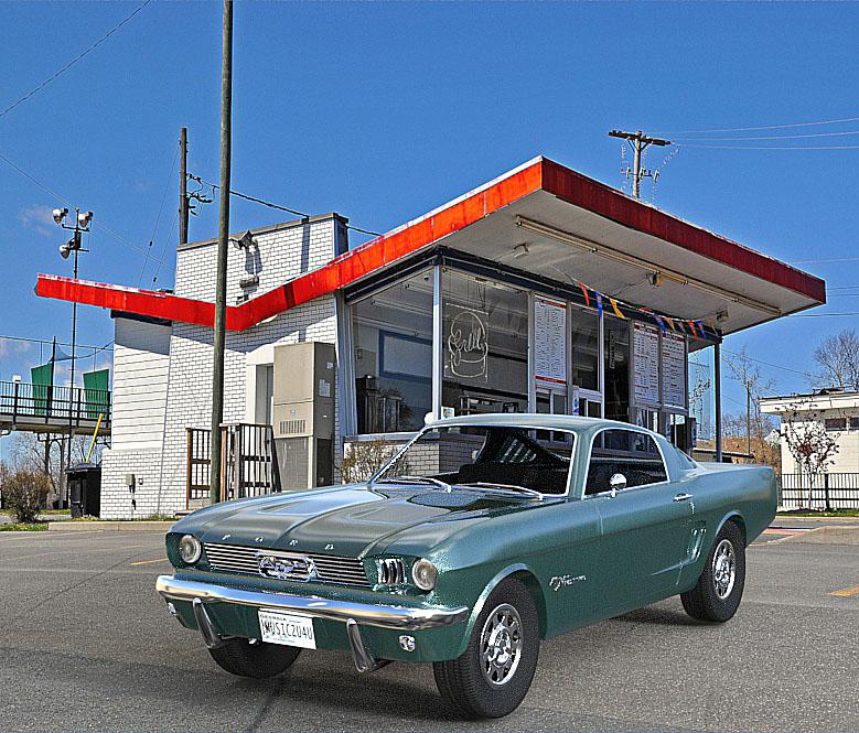 I think of Steve McQueen when I look at this 1966 Mustang. I chose the color to mimic the "Bullitt" car. Great movie!