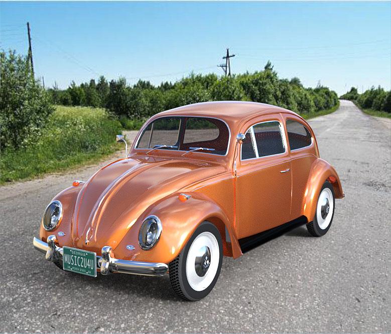 Got a few more freebies to post. Old VW. I put a 1966 license plate on it. That orange was a standard color for the year.