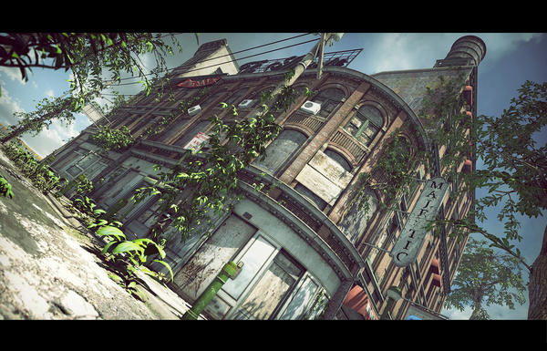 I've even gone in and even changed the complete shader base on buildings For example in the pic below, the tall structure in the background with the radio mast on top is actually one of the blue glass towers on which I applied textures from one of the other buildings in the set to make it appear to be from an older era.