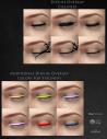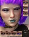 She has the traditional transmapped eyelashes, as well as fibermesh eyebrows and eyelashes with several colors that match the transmapped versions, along with two glitter material presets for the transmapped set.