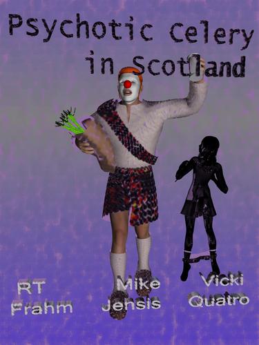 The celery was made in the plant modeler by extending the trunk and reducing the branching and leaves. I made the kilt, sweater, shoes, socks, and sash in the vertex modeler for the Scotsman. Ditto for the V4 clothes. I retextured the Genesis face to be a clown. For one of the render categories, I made my own brush.