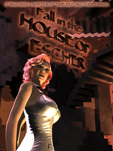 Summary/description: My idea was inspired by an M.C. Escher illustration of stairs. The image itself is whimsical and light, but what if you had a phobia about stairs? I decided to model my poster after '50s and early '60s "B" horror movie posters.