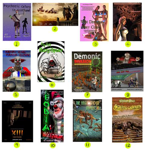 I hope someone makes a few of these movies. I vote for 2, 9, 11. This was a great challenge theme, Stu, So many terrific entries.