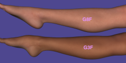 PS: Wie Du an meiner Abbildung siehst, ist der Unterschied bei den Füßen tatsächlich sehr deutlich. Bei beiden Figuren habe ich den Oberschenkel im selben Grad gebeugt. Bei G3F liegt das Limit der Beugung des Fußes bei 75%, bei G8F schon bei 65%. Nehme ich das Limit bei G8F raus, ist auch nicht viel gewonnen. Die Figur hat leider, leider einen Plattfuß. frown