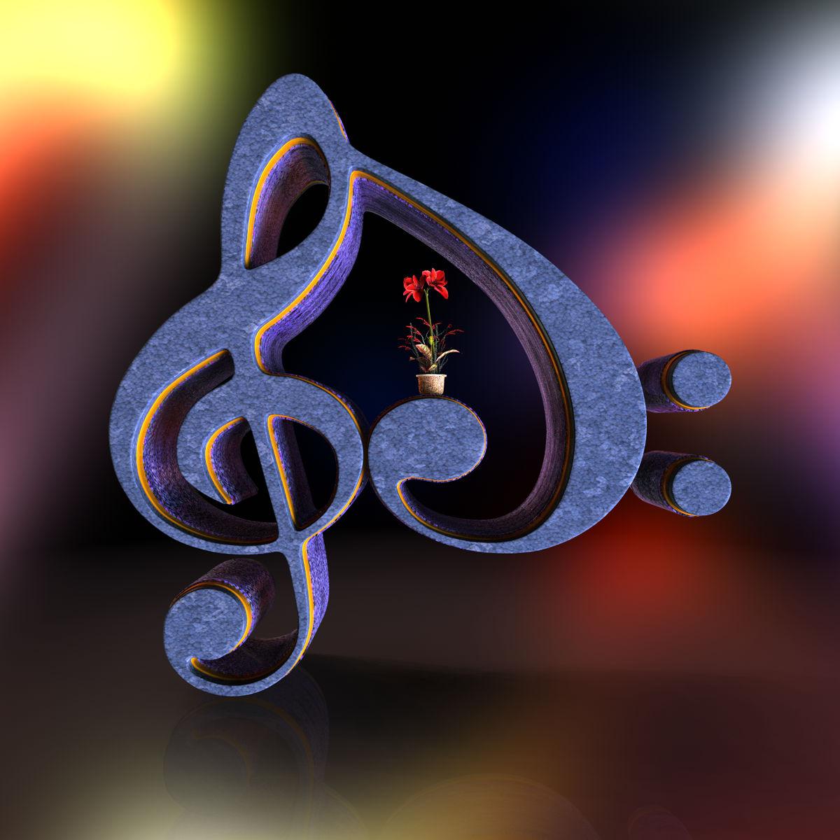 The object is by Art Wade with materials from 50 Metals 1 and 50 Funky Metals sets. Backdrop and light by the WpH86_SC250 HDRI from the Hyper Textures Base set; plants and pot from Xfrog.