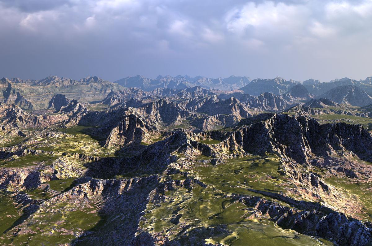 Here is one I did over the holidays. I started experimenting with some height maps generated from a Filter Forge 8 along with playing around with different ways to export color maps for texturing of terrains. I also bought "photo mirage" where I am going to see what happens when I set these into an avi film file.