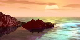 What a difference a few tweaks can make with sky and terrain. Although this material was a quick one I put together, it does look better than the colormap smiley.  I played around with the sky settings in some older sunset scenes.  The Desert Dawn sky comes from Bryce Desert construction kit.