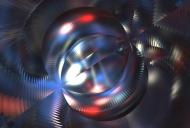 I "hate" abstracts. The tiniest alteration produces yet another cool image. Here the camera with the GWL (gigantic wide-angle fisheye lens) is within a 6-sided spheroid (by John Spirko) with some transparency, reflection, specularity and anisotropy. The 5D-City_SC HDRI lights the inside of the sphere and the HDRI backdrop shines through the half-transparent 6-sided sphere and gets reflected.