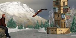 Eagle, Gen2 male, outfit and hair by DAZ3D. Marine  House by 1971s. Fir trees by Merlin Studios. Posed in DS 4.6.
