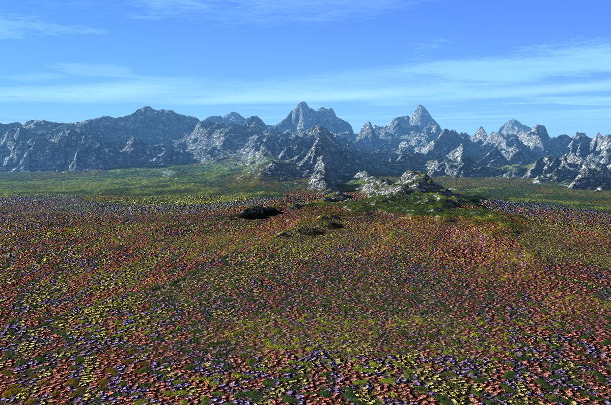 Another example of clouds as terrains. Two terrains and one overlain by another three partly transparent ones with the flowers.