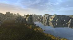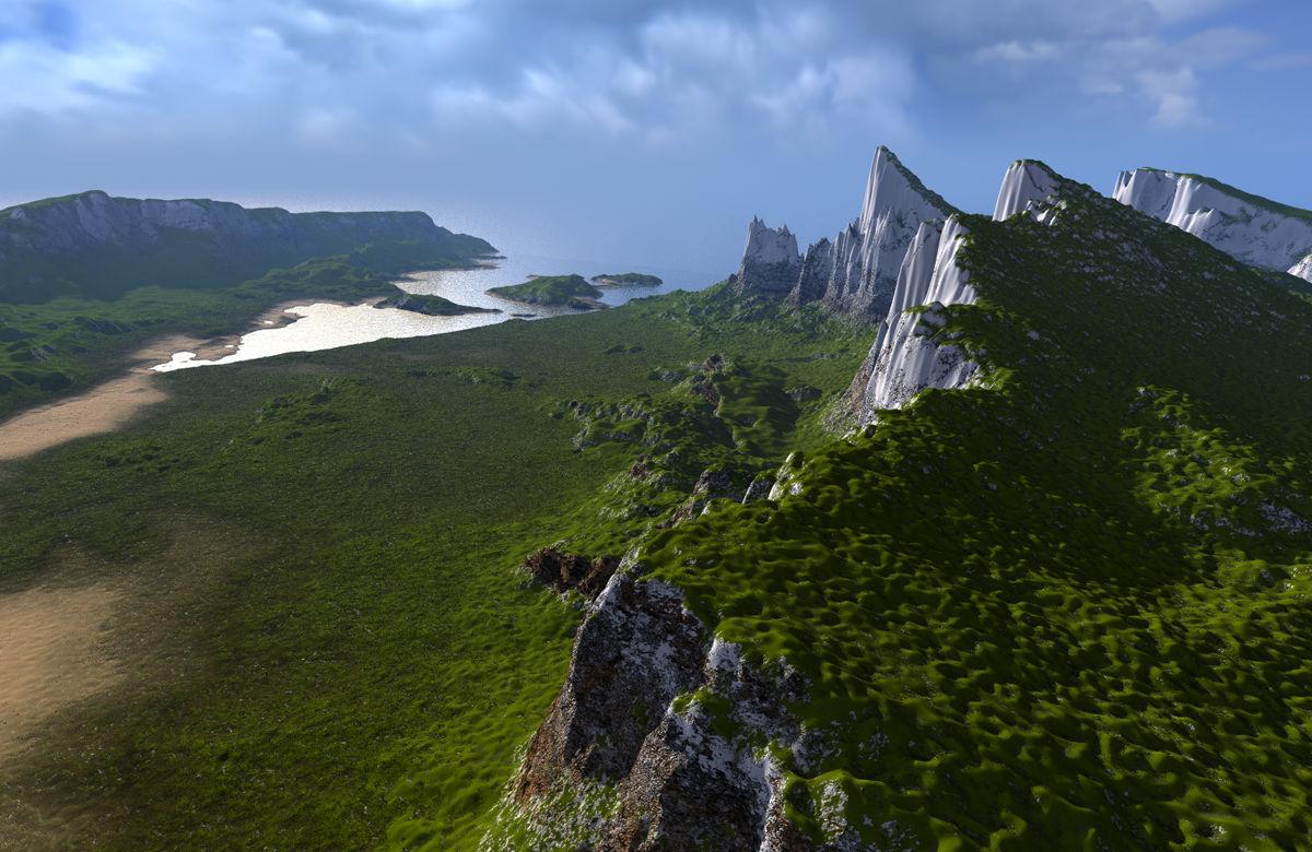 I created a terrain from the DTE, but modified it in the terrain editor. Had to use quite a high resolution to get it a bit smooth. Used a HDRI enhanced sky by Horo and David Brinnen.