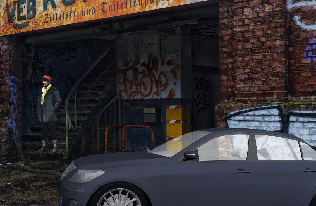 Spuddy: the  first render has a very nice background Is that a background or did you make that yourself. The car looks a bit weird. Maybe I am used to more shiny cars (though mine is not)?  The sky in the second one is very nice. It is almost a pity that the view of the sky is not complete, because of the buildings.