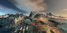 This terrain was made with Gasclouds_B03 (from Landscapes under Fantastic Skies) and the HDRI is also used as sky and ambient light.