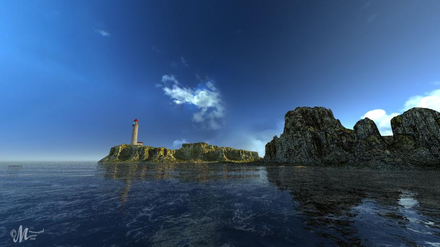 Two more seascape renders from the High-Res set 4, different views of the lighthouse.