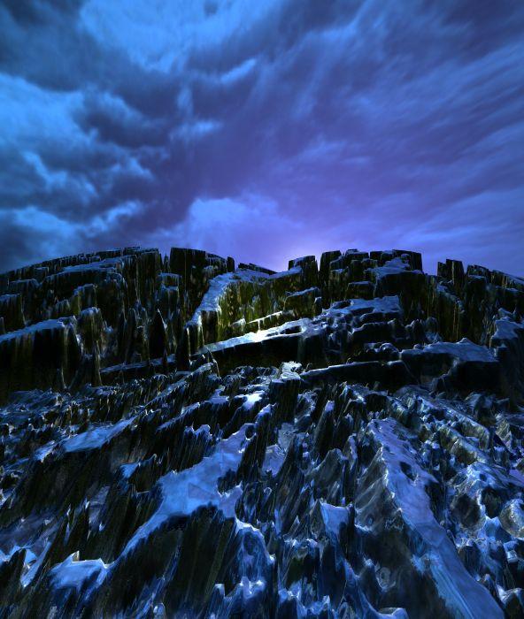 Horo, that terrain looks deadly, like shark's teeth or some other predator.  It's also beautiful at the same time with the material and the lovely sky.