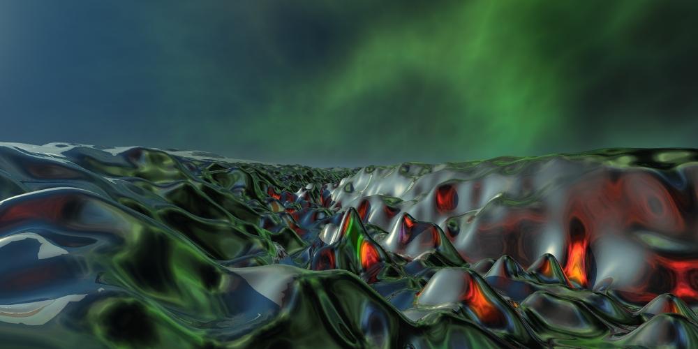 I played some more with reflective terrains, this is so addictive .. like abstracts. The 1st two are terrains and skies from the Landscapes under Fantastic skies. The 3rd is the same terrain as the first, rotated with a sky from the Exotic Hdri set. The 3rd is an abstract without doubt.
