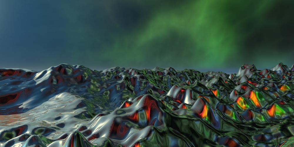 Inspired by Horo’s Fairyland, I tried a Hdri-terrain using the Gasclouds_B03, with a reflective material and some Bump and Specularity. The only difference between both renders is the terrain is rotated a bit in the 2nd.