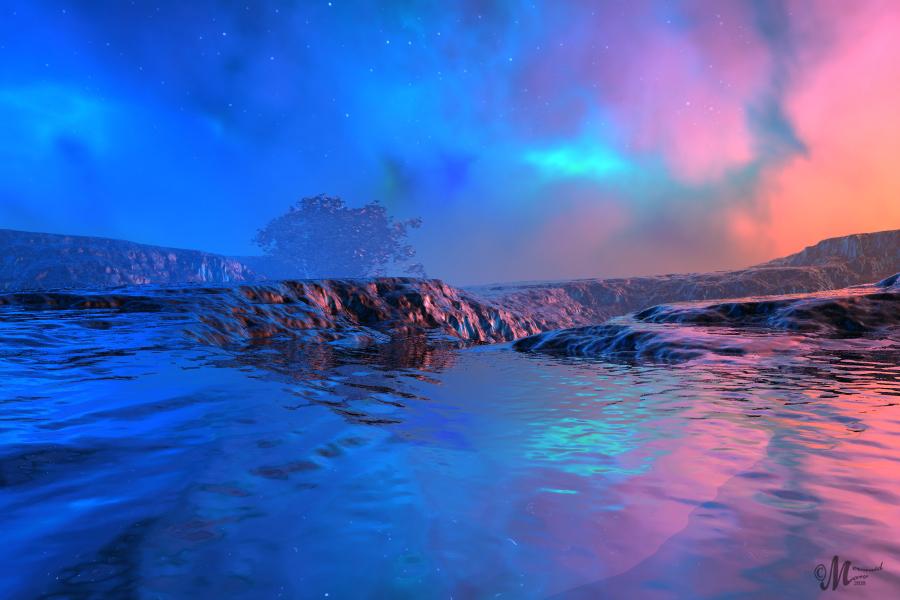 mermaid - fantastic what you did. The first with the tree looks quite realistic, the second has a molten metal look and I like it best, and the third is really very far out how the HDRI backdrop is reflected on the steep wall at left. All three look really great. Real examples that for Bryce even the sky is not the limit.