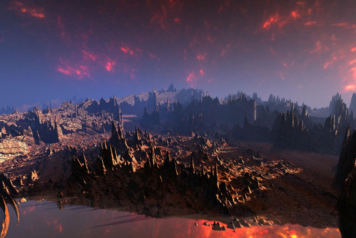 Horo : wow, great 'Spikyland', excellent skies on both renders. The second one is very special, the texture on the terrain is awesome.