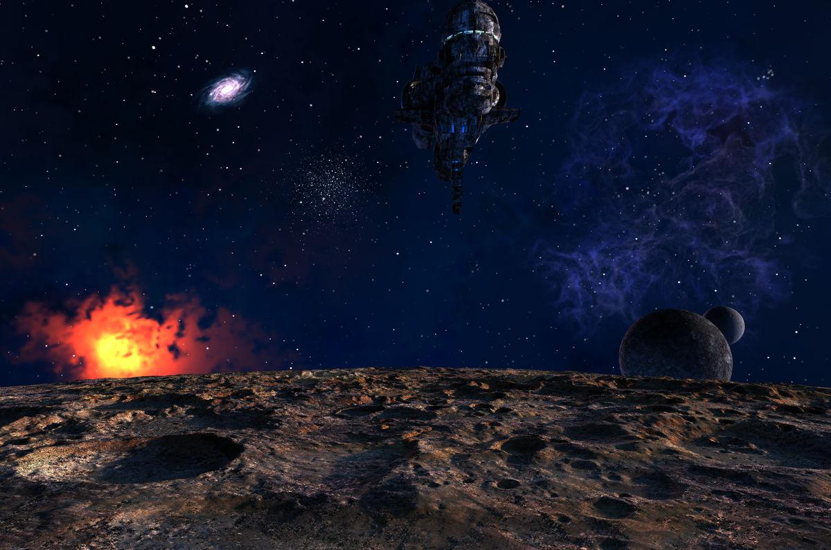 I played around a bit with the Space Construction Kit. Two terrains combined from Moon DEMs and the spaceship is the Hog by Phillip Drawbridge, once available at Daz.