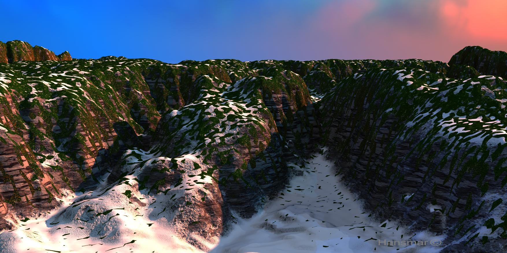 Horo, Love the sky and the lighting is perfect. The terrain material is excellent. I like the rocks in the foreground for interest.