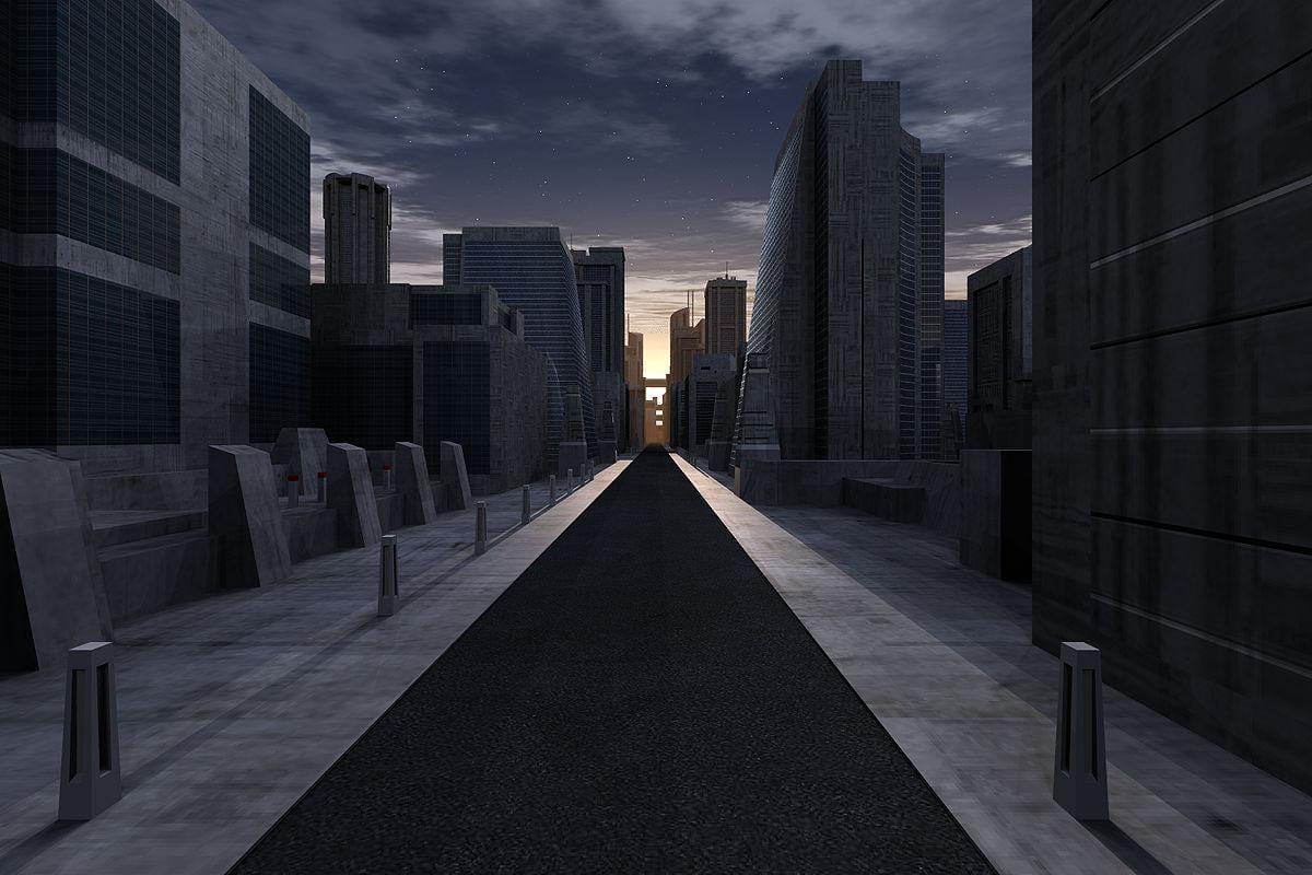 Inspired by Hansmar's city scene in the Strange Objects Download page 4. Nine Dystopia City Blocks, clouds from Object Clouds 2D & 3D and the stars from the Space Construction Kit. Light and visible sun (through the haze) by an HDRI.