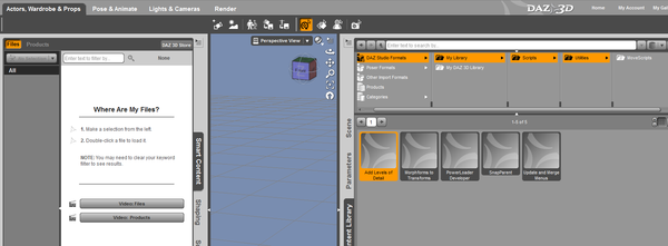 In Content Lybrary tab, all I can find is under DAZ Studio Formats->mylybrary->scripts->utilities->movescripts : five
