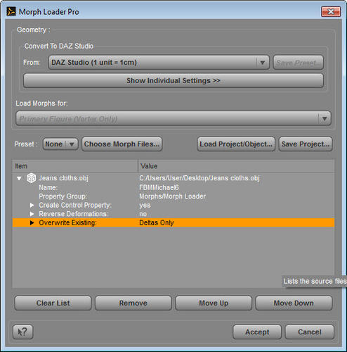 Many thanks for the informative post. I had not idea about the FBMM6 and FHMM6. I had proceeded the way I always did when making cloths for other figures in the past. This would explain why the replace morph option didn't work. I will try one more thing (making it one mesh instead of two) before splitting the mesh. This has been a most educational experience. i will post my results later after work.