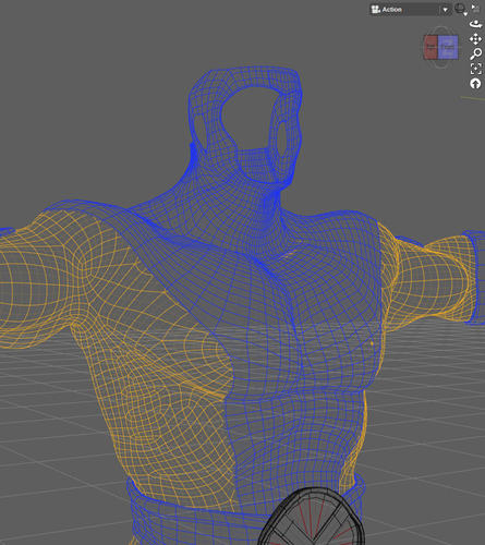So let me try and wrap my head around this...the blue, on the body suit, is not just a material zone, but a second layer to the mesh?