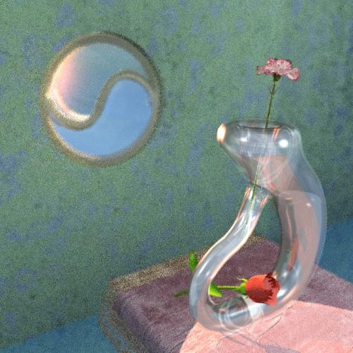 Carnation is Lisa Botanical's. Rose is free obj from "ActualFantasy" on "Turbosquid." The rest I modeled in Wings3D or Bryce using standard or tweaked textures. Oh yeah, the table is from Curious Tea.