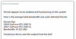 * I would suggest trying both with and without this enabled. Technically speaking SLI functionality directly conflicts with Iray's self-contained programming model. However there have been rumors (stemming from the initial Turing release) that NVLink functionality was only really being exposed on Windows systems if SLI was enabled (since SLI on Turing cards is virtualized as just another data stream over the NVLink interconnect.) However however, the test results you posted here indicate pretty conclusively that this is not the case. At least they do if you didn't have SLI enabled at that point. If you did, I'd also suggest disabling it and then running the PugetSystems test again to see if it changes anything just to be sure/potentially lay some rumors to rest.