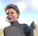 I circled the mouth area to show where the ugly redding tinge is. I also noted the fingernails looked odd, since I didn't add "nailpolish" to this character, but those are lilac in all of the modes.