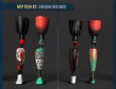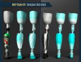 Each prosthetic wearable is called S01 - S06, "s" stands for "style" and the numbers are the different plates set-up we've included. The add-on continues this naming convention so you'll know to which wearable you should apply the designer set. So, for example, the "MLPR S01 SteamPunk L" hierarchical texture set will only work correctly when applied to the "MLP Prosthetic Leg S01 Left" werable included in the base product.