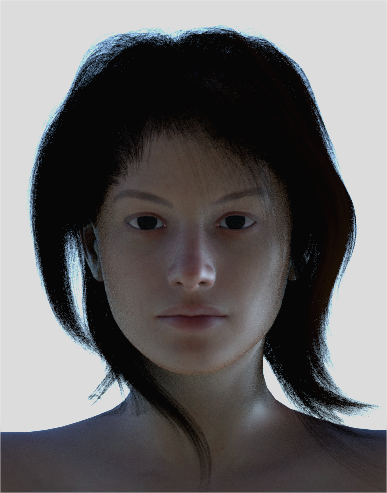 The skin looks entirely too matte finished, there should be a slight transparency or light gain around the ears, there s none.