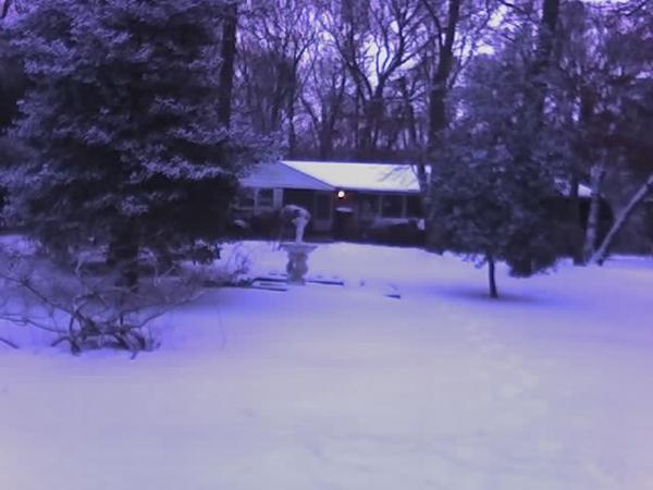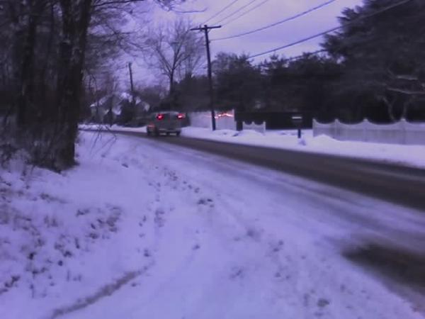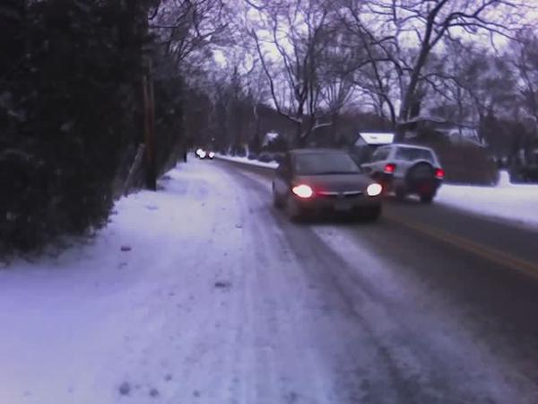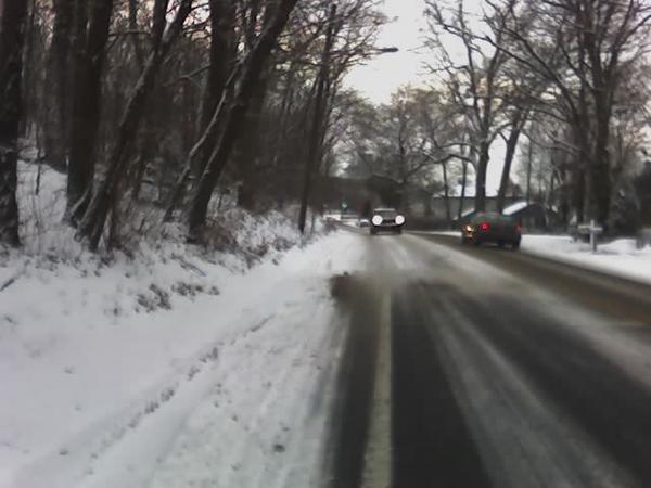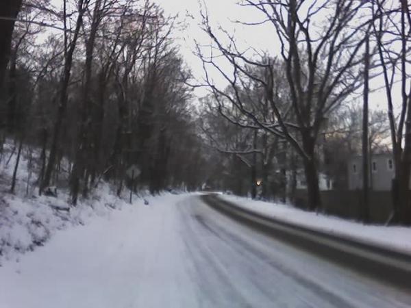 snow looks pretty. Be careful walking on the side of the road. I don't see a sidewalk. maybe the sidewalk is under the snow.