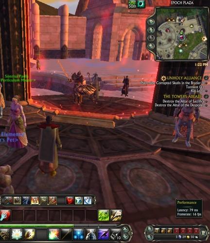 My computer is slow. But you already know that. Here is the game Rift with the video quality set to the lowest setting. I see jagged edges, dark surfaces and 16 frames per second in a city.