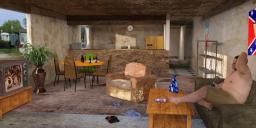 I know there are a couple Trailer Park props out there and one even has an interior. It's just hard to shoot in due to the close quarters. The bedroom is just big enough for the bed. I don't doubt that there is a Mobile Home out there like it but it would be nice to have a quality one that's just a little roomier. I made one myself out of primative planes (attached) and it's okay. I'm sure someone with more skill could really make it pop though. Oh and please excuse the mess. Cletus wasn't expecting company.