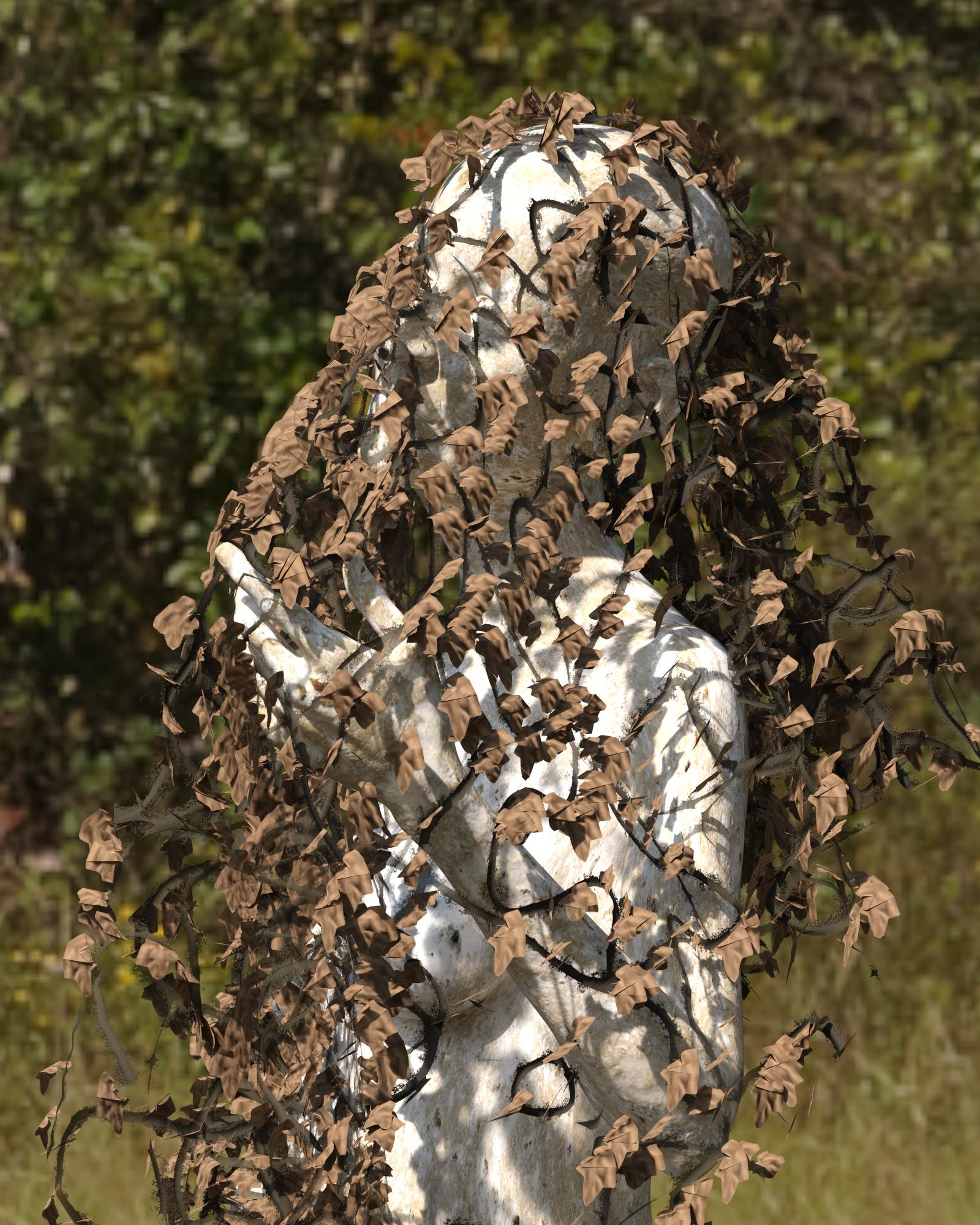 For whatever is worth, I don't think the underlying textures of the character matter overly much and, if somebody wanted to use a character's skin with the thicket growing out of it, they could always hide the outfit surface (assuming it is form-fitting, obviously). Also, if you are branching out (unintended, and now I hate myself a little bit) into clothing, I would love to see a cloak made of leaves or ivy. A friend of mine played a ranger with one of those, and the image was striking enough to stick into my mind--and the drapable circle in the latest product certainly looks good over that statue.