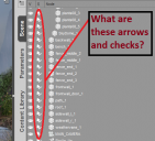 See screenshot: In the Scene tab, what are these arrows and checks for?