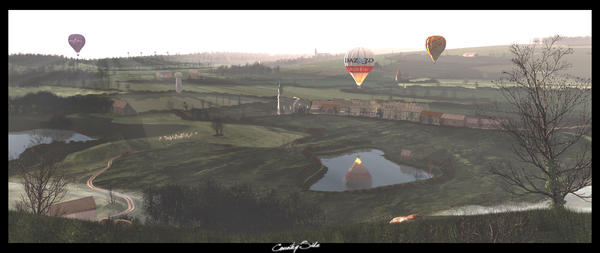 Wow, Marco! Fantastic and elaborate image. I've never been to Europe, but I still could have thought this image was a photograph. The atmospheric choices do a great job of achieving scale. I love the way the balloon with Daz written on it seems to almost glow in certain areas as if light was indeed transiting the fabric in a very natural way.. Excellent!!!