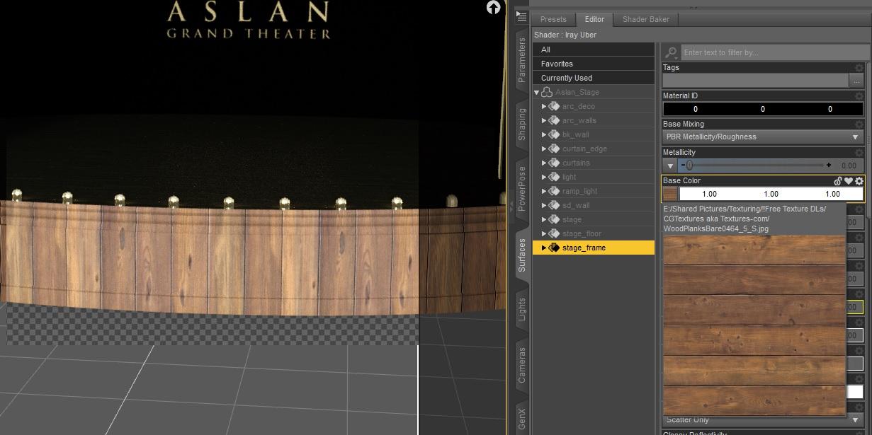 I was trying to use a wood texture on the Asian Theater stage base. I just used PNG of a wood panel in the diffuse channel