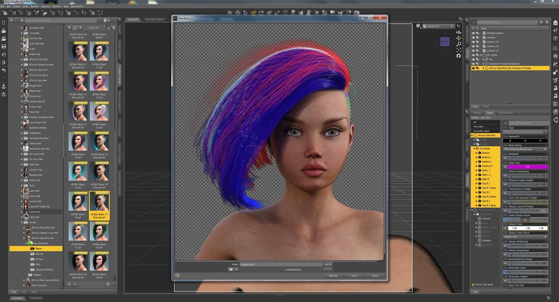 1. Load dForce Side Bob Hair