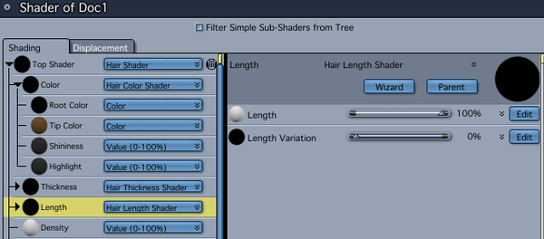 And as EP said above, be sure the hair length shader is OFF and that the thickness shader is OFF as well. Once trimmed you can then decide if you want to make the roots a wee less than 100% thick... for a more naturalural progression from root to tip. Even the top might need a wee reduction.