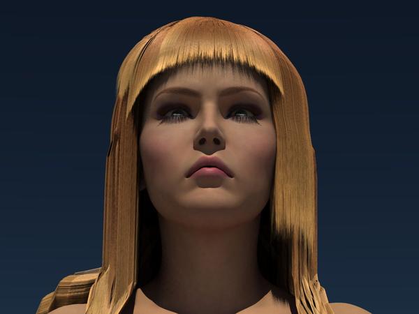 For the past two weeks, I have been trying to use the Hair room in Carrara to create some hair for a render that I am composing. The image is based of the cover of the Artpop Lady GaGa album, and I have attached a crop of the picture, as well as two different attempts I have done so far. I am not using any kink settings or shaders, just the main tools at this point. However, I cannot get it to look right. The ends are ragged, and the hair just won't fall the way I want it to. Any advice will be greatly appreciated :-)