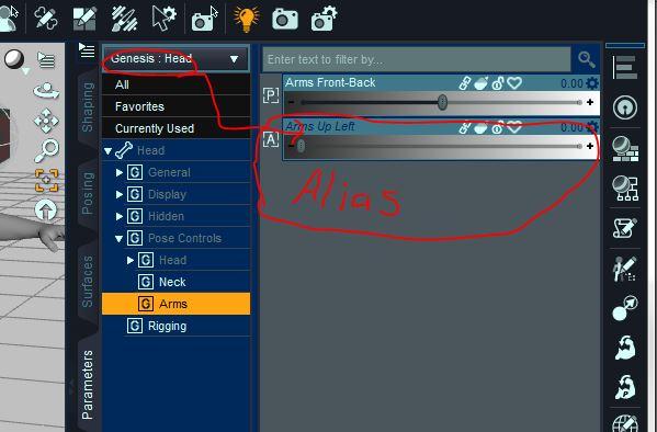 In particular, some of the facial expressions sliders appear in the parameters tab (in Pose Controls / Head / Expressions) when I have the root Genesis figure selected. Others only appear if I click on the Head, which is a child of the parent Genesis figure.
